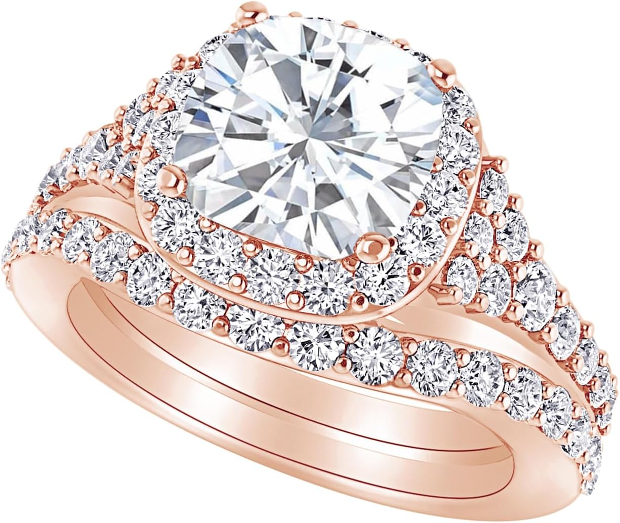 1-8 Carat (ctw) White Gold Cushion Cut LAB GROWN Diamond Single Halo Cushion Cut Wedding Bridal Set (Color D-E Clarity VS1-VS2)