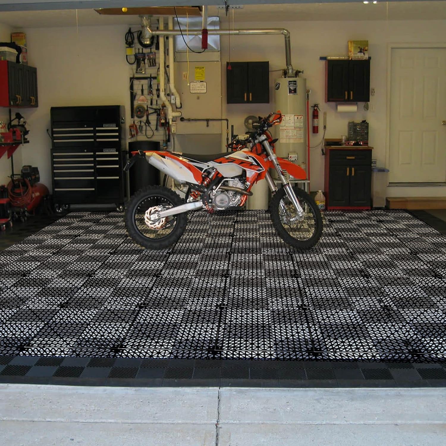 12 Pack Modular Interlocking Cushion 11.8" x 11.8" Mat Floor Tile Mats for Drain Pool Patio Balcony Yard Pet Area (Black) Feature: Floor mat drainage mats made of high-quality PVC, durability and safe; The anti-fatigue rubber flooring mat help soothes and gently massages tired your feet. Interlocking rubber floor tiles with anti-slip surface, which features excellent grip, can prevent dangerous accidents especially for pregnant woman, the aged, children. Pool floor mat is also great for wet feet, help keep the wet feet cool. They are easy enough to take apart & soak to clean if needed. And these floor tiles are flexible hard rubber, super easy to fit together and can be trimmed to fit if needed. Drains well. The drainage tiles tall is 15mm, enough to keep the mat off the ground and allow for drainage and airflow. Installation on most surface, such as concrete, wood, tile, even use in a bathtub. Application: Many uses around the home, boat, kennel, business, as well in sports facilities, workout or rest areas, changing rooms, outdoor shower floor, and basically any humid location. So many uses around the pool. Put a tile under a plant pot, cut to fit any complex shape. Install in vehicles and campers as well! Specification: Material: Thickened PVC Color: Black Design: Drain Hole, Splicing Size: 11.8 inch x 11.8 inch c Thickness: 15mm/0.59inch Package Included: 12 pcs interlocking rubber floor tiles