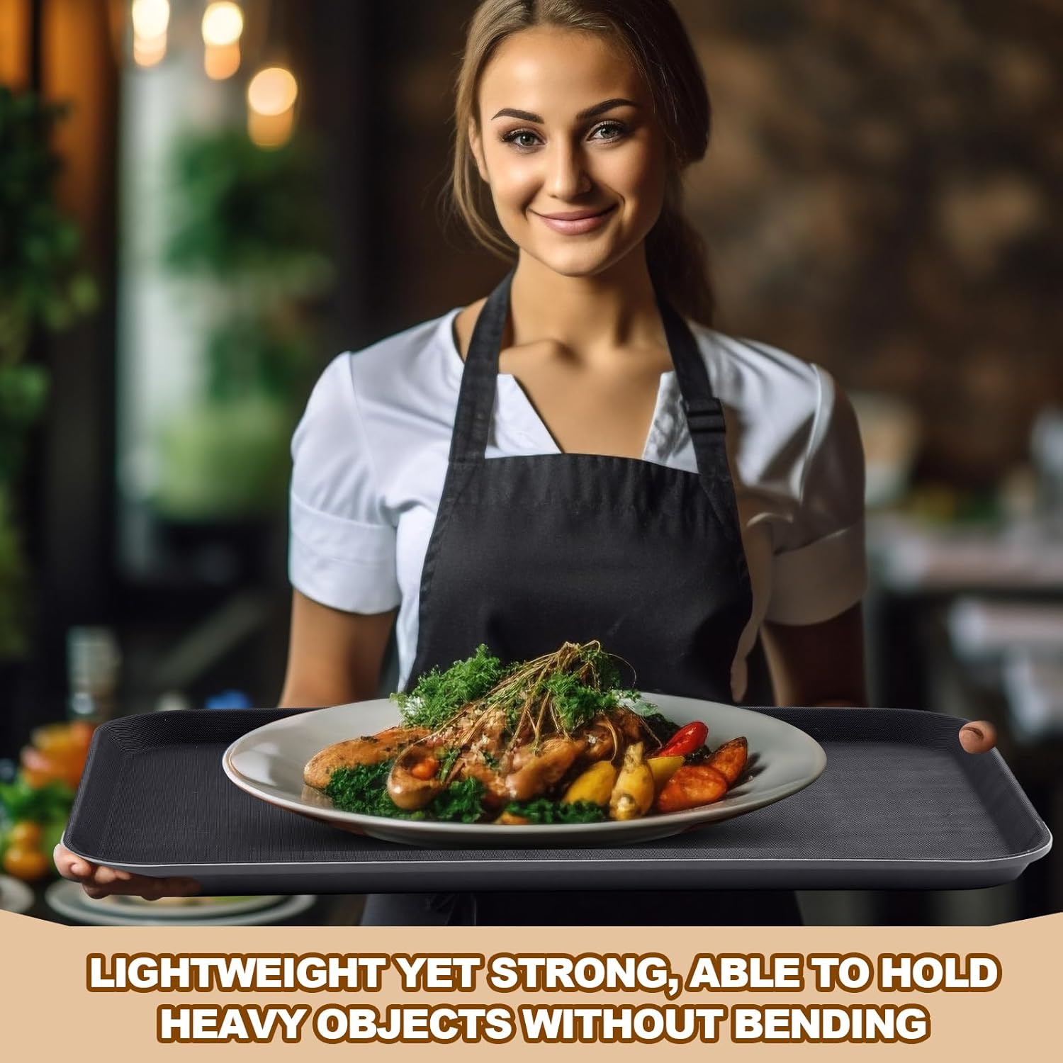Features: Our restaurant tray goes more than the basics to meet your serving needs. It's equipped with nonslip rubber surface design for secure placement of items, it can easily be cleaned and maintained with just a wipe or thorough washing, and with its considerable size, it offers ample space for your serving necessities. Our trays are very easy to clean. After use, just wipe them and let them dry completely. To make them last longer, it is recommended to wash your hands. Following this correct usage method can ensure that your trays remain in good condition for as long as possible. Specifications: Material: fiberglass reinforced plastic Color: black Size: approximately 18 x 26 inches Package includes: 2 x Restaurant trays Notes: Manual measurement, please allow slight errors on size. The color may exist a slight difference due to different screen displays. To ensure it lasts longer, handwashing is recommended. Simply wipe it after use and allow it to dry thoroughly