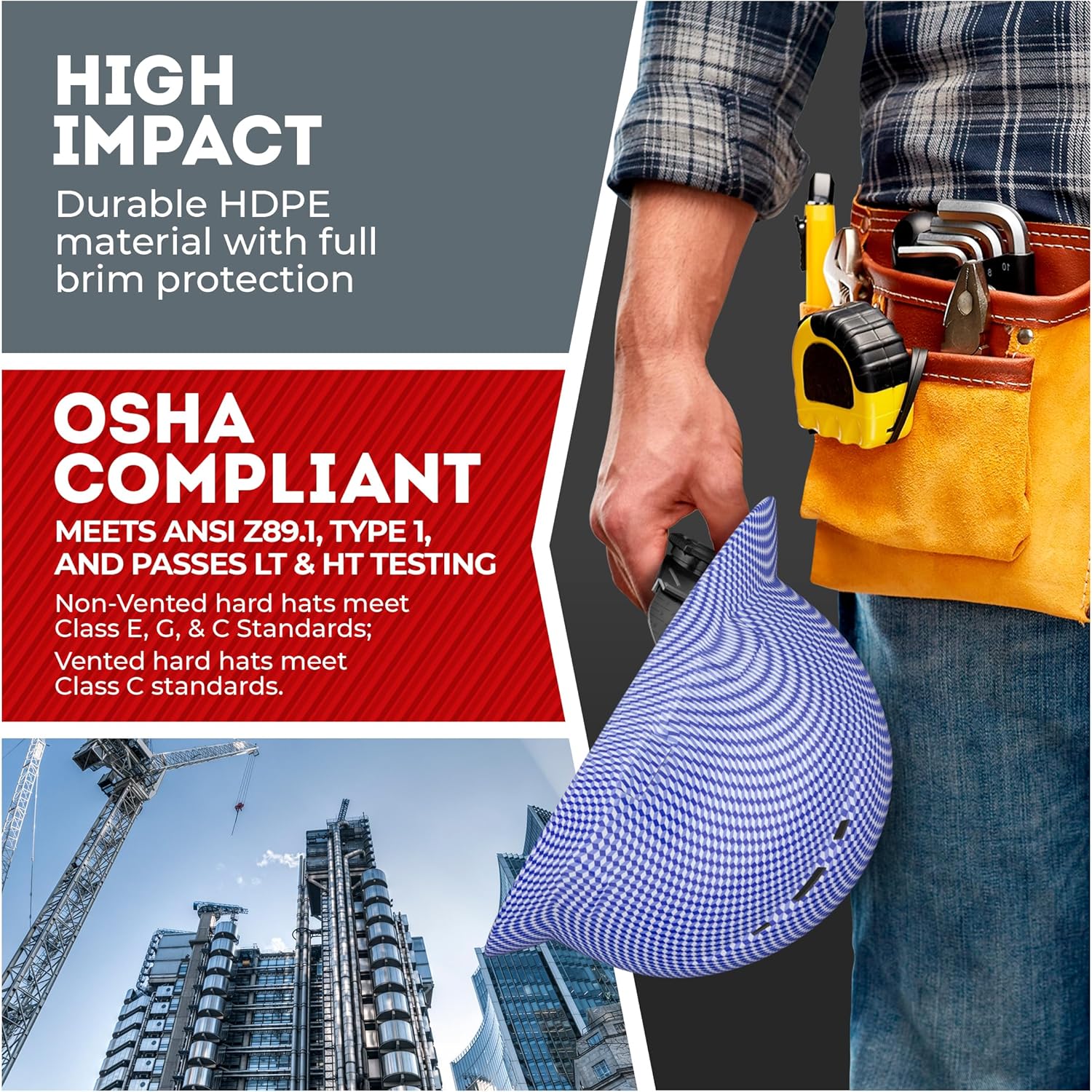 | Included Components | 6 Point Adjustable Ratchet Suspension, Chin Strap, Full Brim Vented Hard Hat |