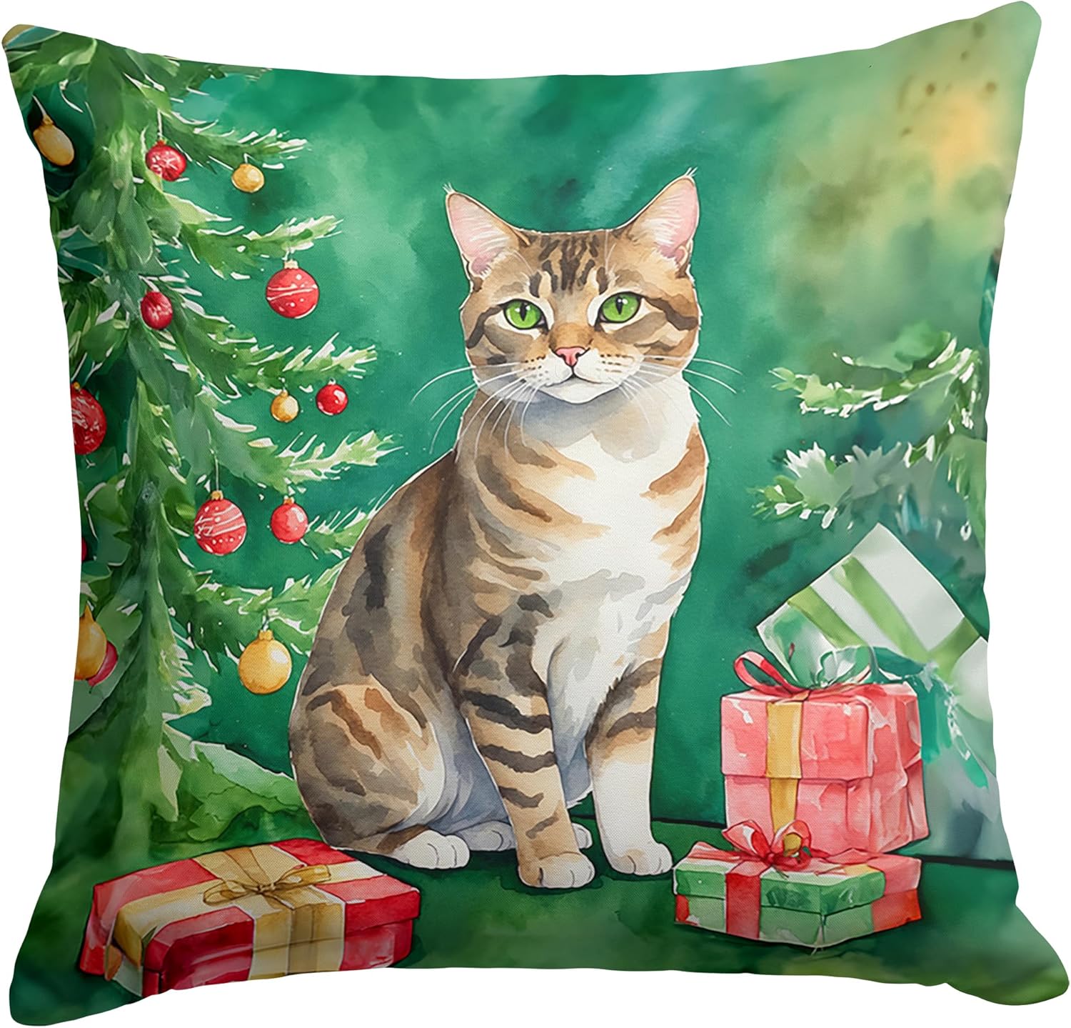 Throw Pillow featuring breed specific California Spangled artwork. Celebrate Christmas with this Christmas Pillow. Revitalize your outdoor or indoor living space with Caroline's Treasures 18x18 Fabric Decorative Pillow. With a generously sized dimension of approximately 18 inches by 18 inches, this pillow makes a comfortable and aesthetic addition to any seating area. Made from a unique, water-resistant material developed by Caroline's Treasures, the pillow sham is 100% polyester fabric that's durable and ready to weather any condition. Its vibrant, full-color artwork will not fade over time as it is dyed with color-fast dyes. Whether you place it on your patio furniture, porch, veranda, or indoor couch, its soft canvas fabric ensures a cozy experience. The pillow is handcrafted in the United States, featuring a sham created from three pieces of fabric and a polyester insert for enduring shape and overstuffed comfort. Despite being robustly built to endure the outdoors, it is as soft and snug as your favorite indoor cushions. Please note, as all our pillows are handmade, sizes may vary slightly, adding to the charm of this unique decorative item.