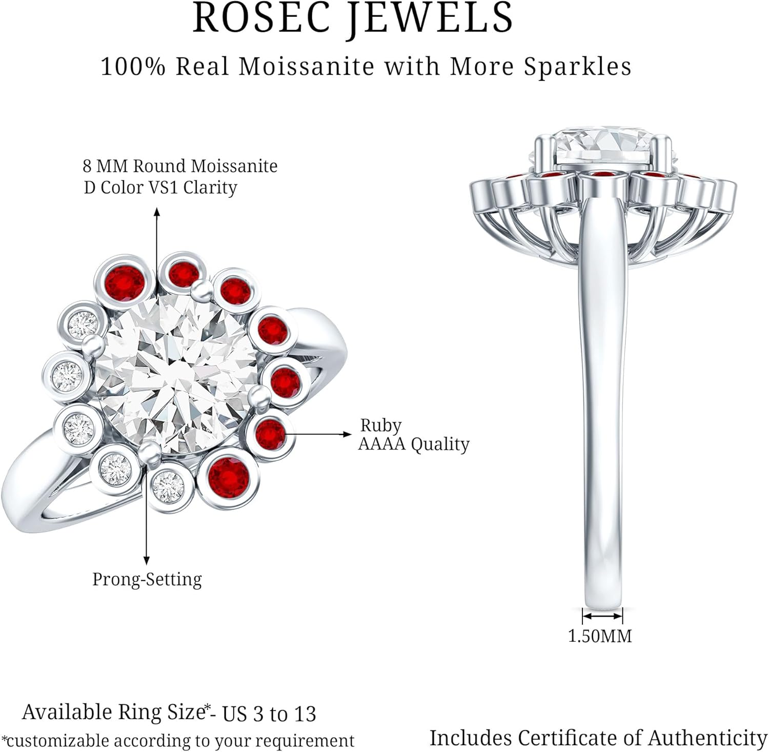 | Gem Type | Lab Grown Ruby, Moissanite |