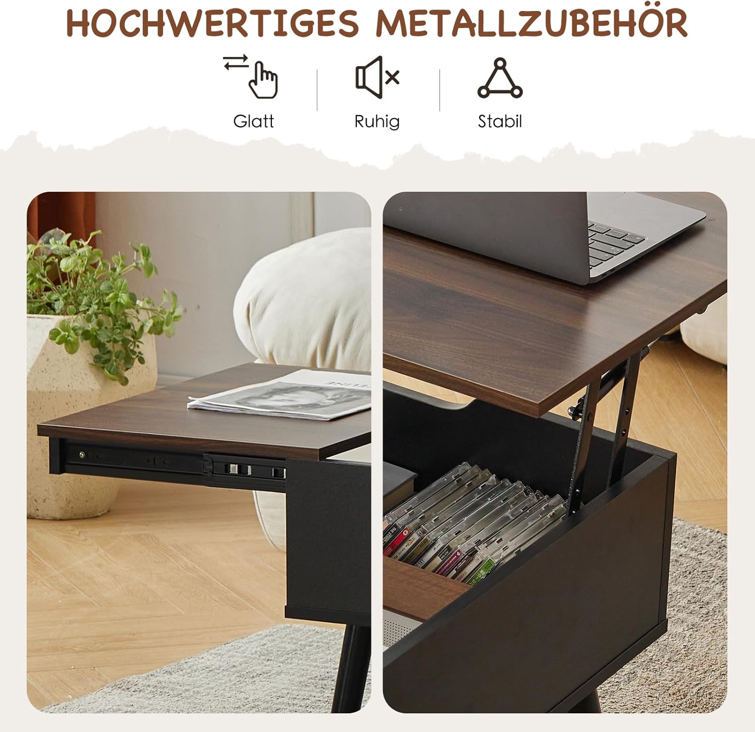 JanflyHome Lift Top Coffee Table, Coffee Table with Hidden Sliding Storage Drawer, Modern Coffee Desk for Living Room, 39.5 * 19.8 * 17.1 inch, Walnut