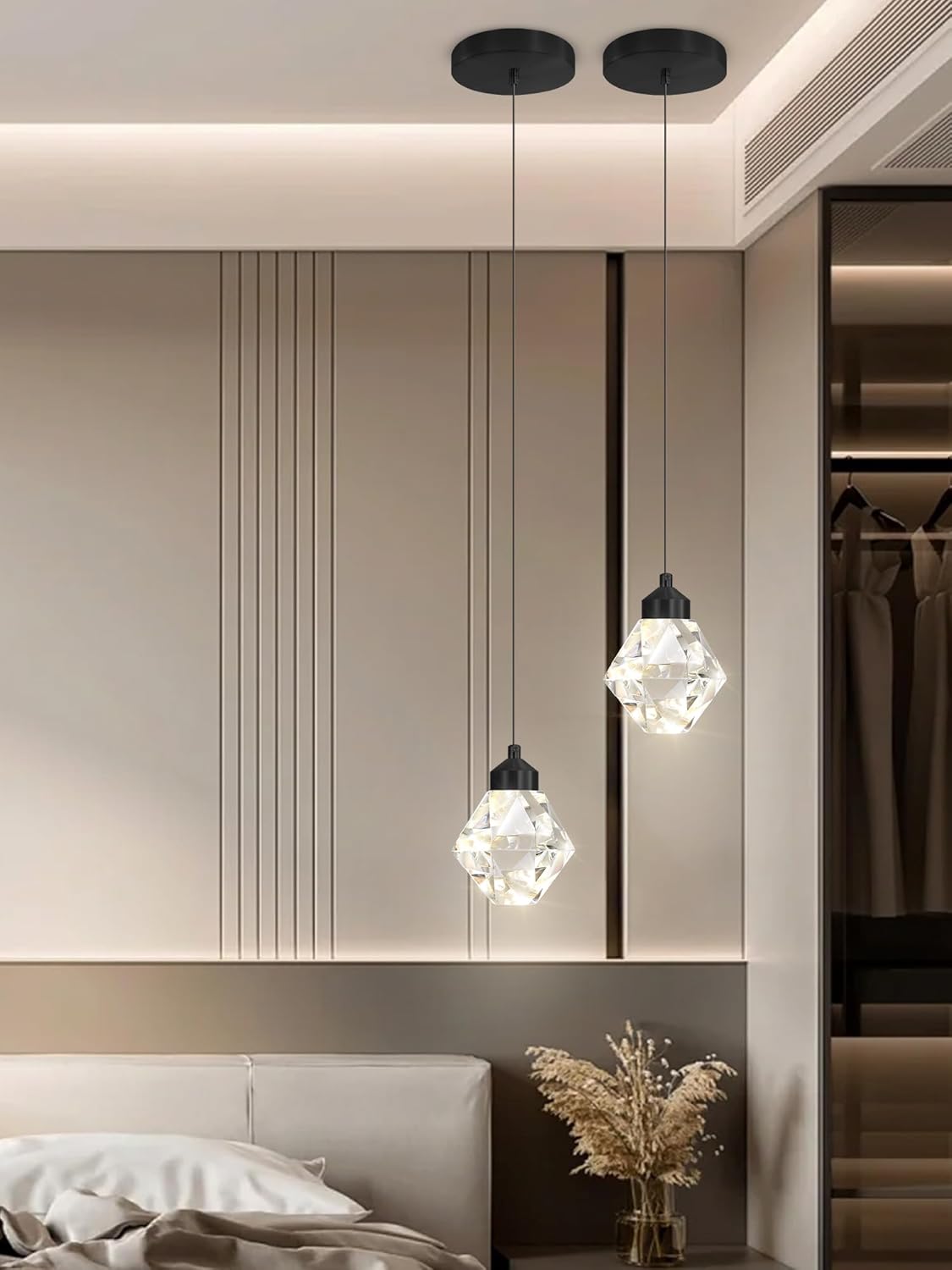 Crystal Pendant Light for Kitchen Island,Black Chandelier Lights Fixture, Hanging Lighting Ceiling Light Fixture Modern Adjustable Pendant Lighting for Dining Room Bedroom
