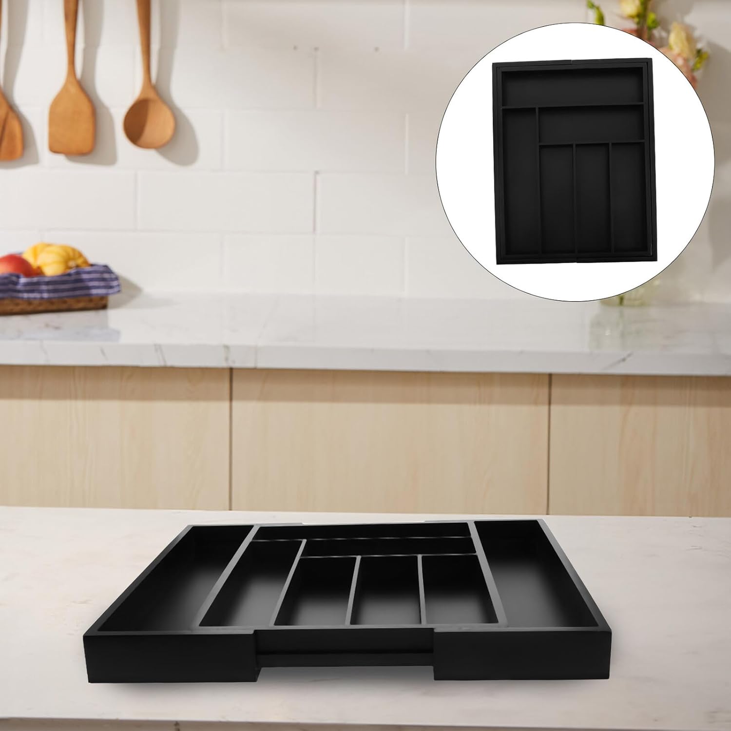 Package Include 1 x drawer storage box Characteristics -Size:42.50X33.00X5.00cm/16.70X12.97X1.97in -Color:Black -Material: -Easy access drawer: the drawer style layout allows for quick and easy access to your and forks, streamlining your kitchen routine silverware drawer organizer tray -Product Info:Drawer storage box -Versatile application: ideal for use in kitchens, dining rooms, and outdoor activities, providing a practical storage solution for various needs silverware drawer organizer - : made from , this organizer is sturdy, reliable, and naturally resistant to wear and tear narrow drawer organizer -Adjustable fit: the expandable design the organizer can adapt to different sizes of kitchen utensils and cutlery, offering a fit -Separate compartments: the individual compartments keep your cutlery organized and protected from collisions utensil holdersGoods Informationcutlery organizer in drawer The expandable design allows it to fit various drawer sizes, while the adjustable compartments provide a unique storage solution.kitchen decor and accessories This kitchen drawer organizer is the ideal solution for keeping your cutlery neatly arranged.silverware drawer organizer The natural material is both stylish and reliable, ensuring that your kitchen remains organized