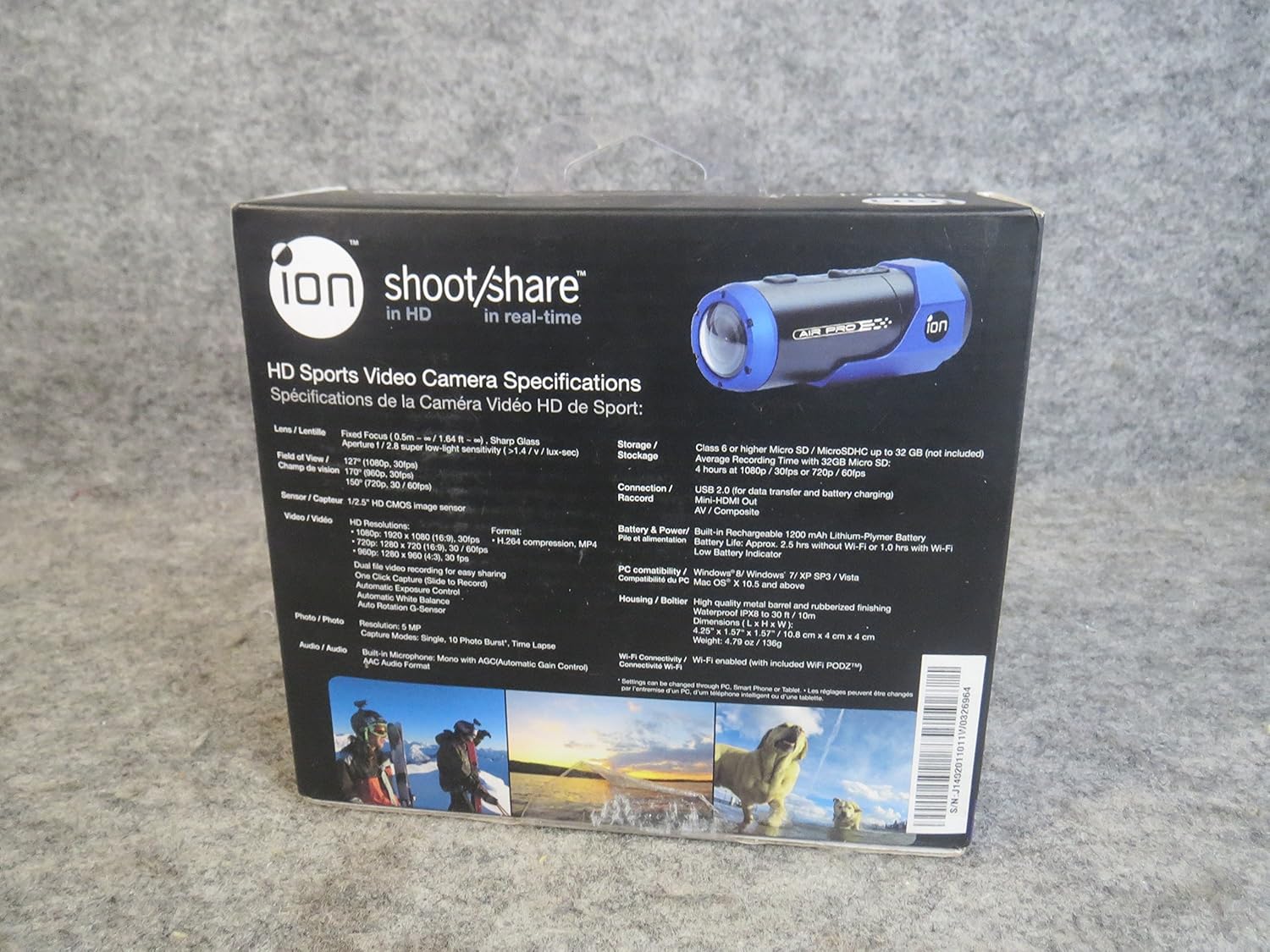 The iON Air Pro Lite Camcorder features with 1080p resolution, waterproof technology up to 30.0 feet and WiFi enabled. iON Air Pro Lite 811233021157 WiFi Shoot and Share HD Sports Video Camera Camcorder - Blue. This is a refurbished item restored to meet manufacturer quality standards. They may show limited signs of use and cosmetic blemishes and carry a manufacturer warranty. If the manufacturer is unable to assist with the warranty, Tech For Less will warrant the item with the same coverage as the manufacturer.These items can be in the original manufacturer box or repackaged for protection during shipping. Product Name: iON Air Pro Lite Camcorder Product Type: Camcorder Color: Blue Resolution: 1080p Waterproof: Upto 30.0 Feet WiFi: Yes Weight: 4.8 oz The Air Pro Lite Wi-Fi is a professional sports action camera suitable for just about anything. Waterproof up to 10 meters/30 feet without any outer case required, it records videos in HD at up to 170-degrees wide angle.