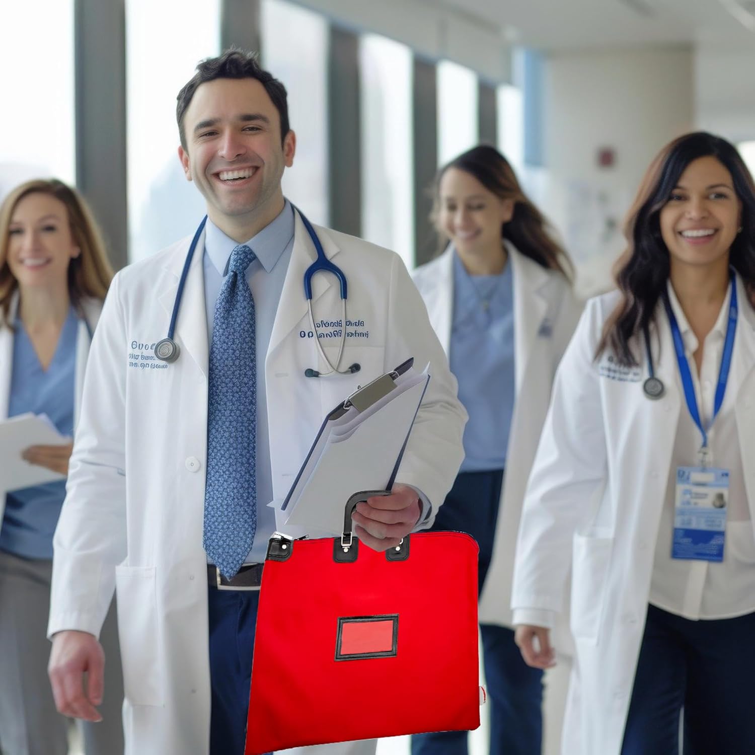 The Cardinal bag supplies large locking document bag with handles is built for durability and security, featuring a premium grade laminated nylon and a heavy-duty zipper to withstand wear and tear. Its water repellent protects your valuables from splashes and spills, making it perfect for challenging conditions. The industrial grade standard pop-up lock with two keys, ensures maximum security. The key is not required to remain in the lock to secure the bag. The HIPAA bag measures 16” x 20”, complete with a sleek, black-framed cardholder (3.5" x 5.5"). Our security bags with lock lets you showcase business cards or ID tags for fast identification. The hard handles allow for easy carrying and can be folded down for storage. The security bag is hand crafted in the USA and meets HIPAA Privacy rules for storage and transportation of medical records, legal or X-ray size files (8” x 10”, 10” x 12” or 14” x 17”), cash, and documents.