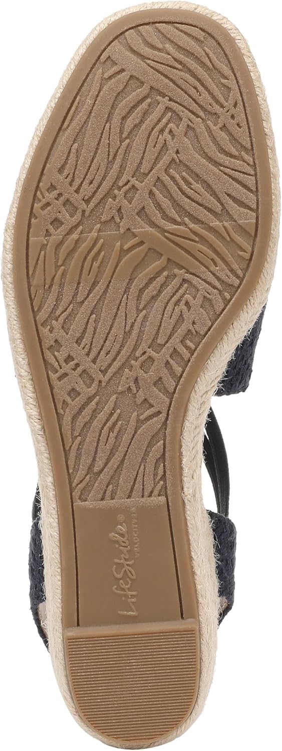 Breeze through busy days and sunny weekends in style with these women's espadrille heels, crafted for a look that’s as flattering as it is comfortable. Featuring a crochet fabric upper, almond closed toe, supportive slingback with crisscross stretch straps, and an espadrille-inspired braided wedge heel. Trusted Soft System® comfort technology for unmatched cushion, support, and flexibility in every pair. Shock absorption with pressure distribution and superior cushioning for an effortless feel. Traction sole for extra stability. Just-Right Height 1 3/4 inch wedge heel.
