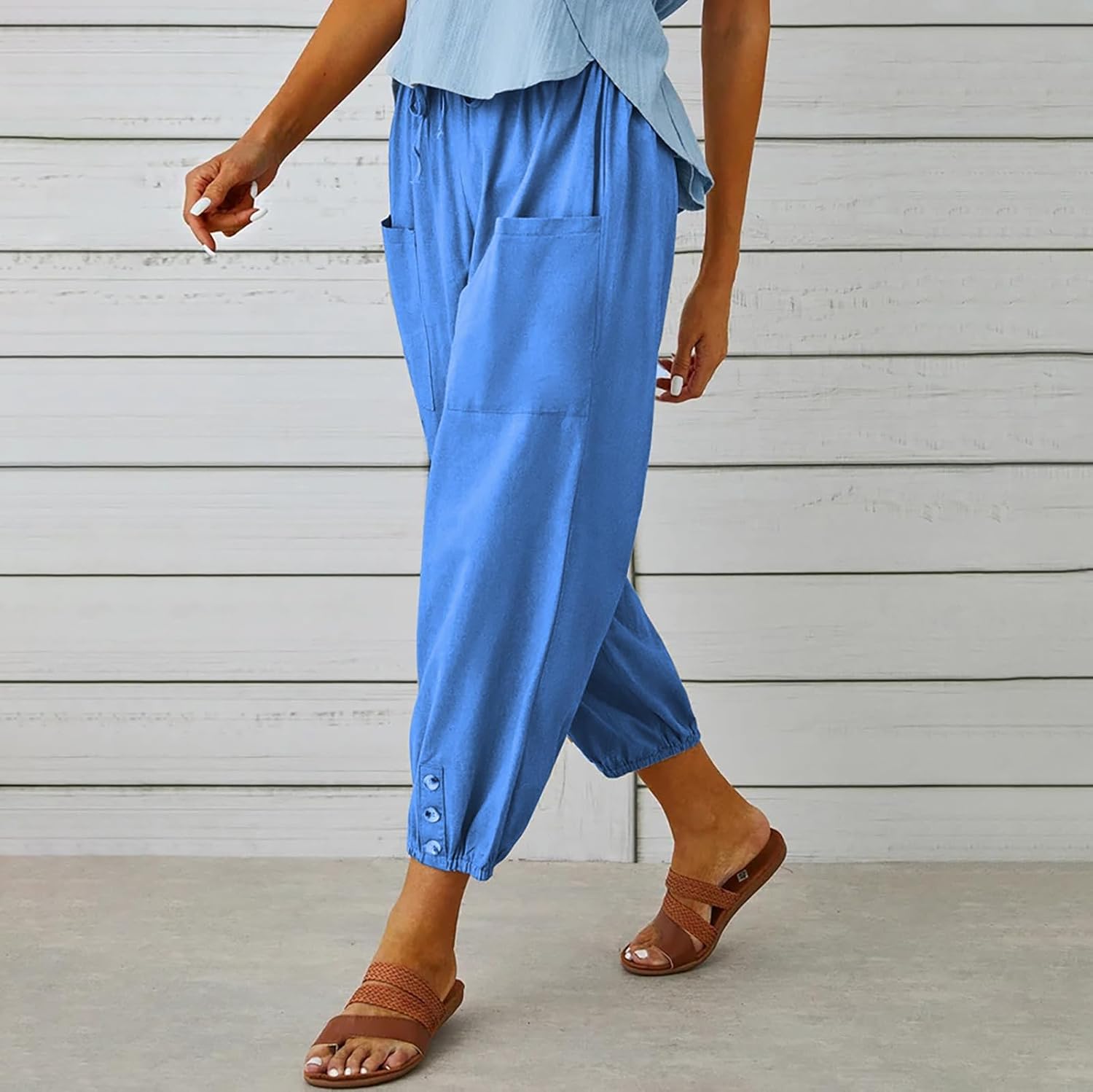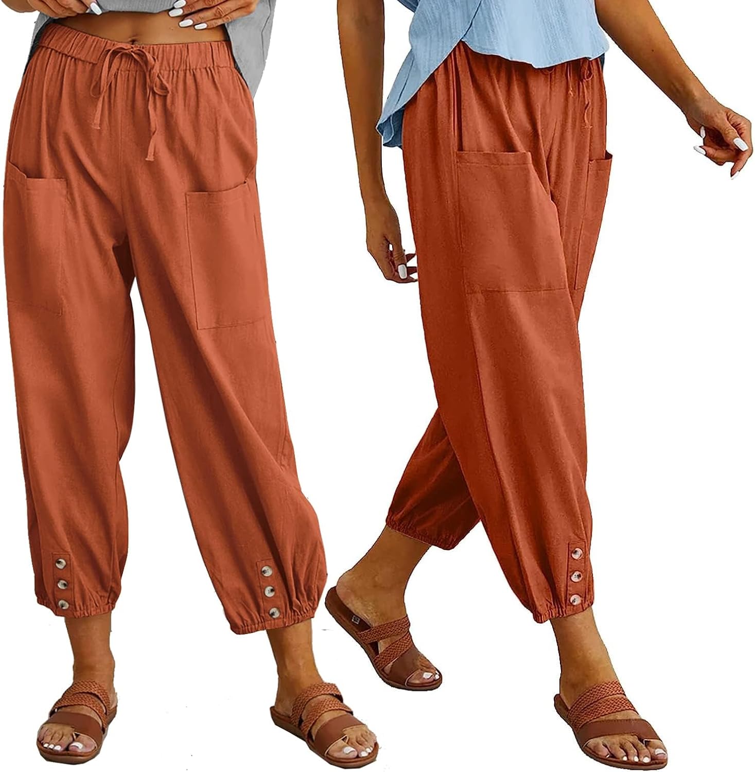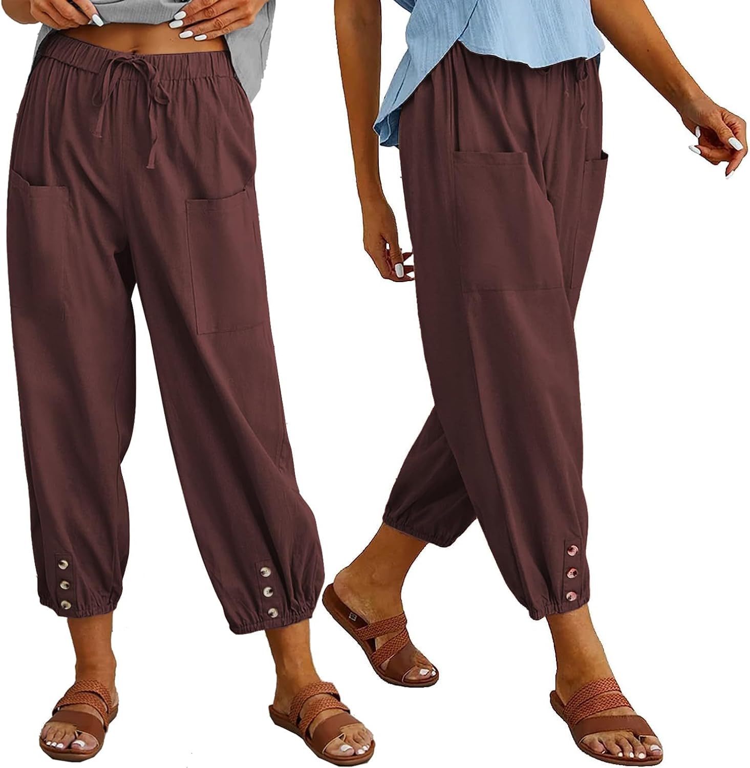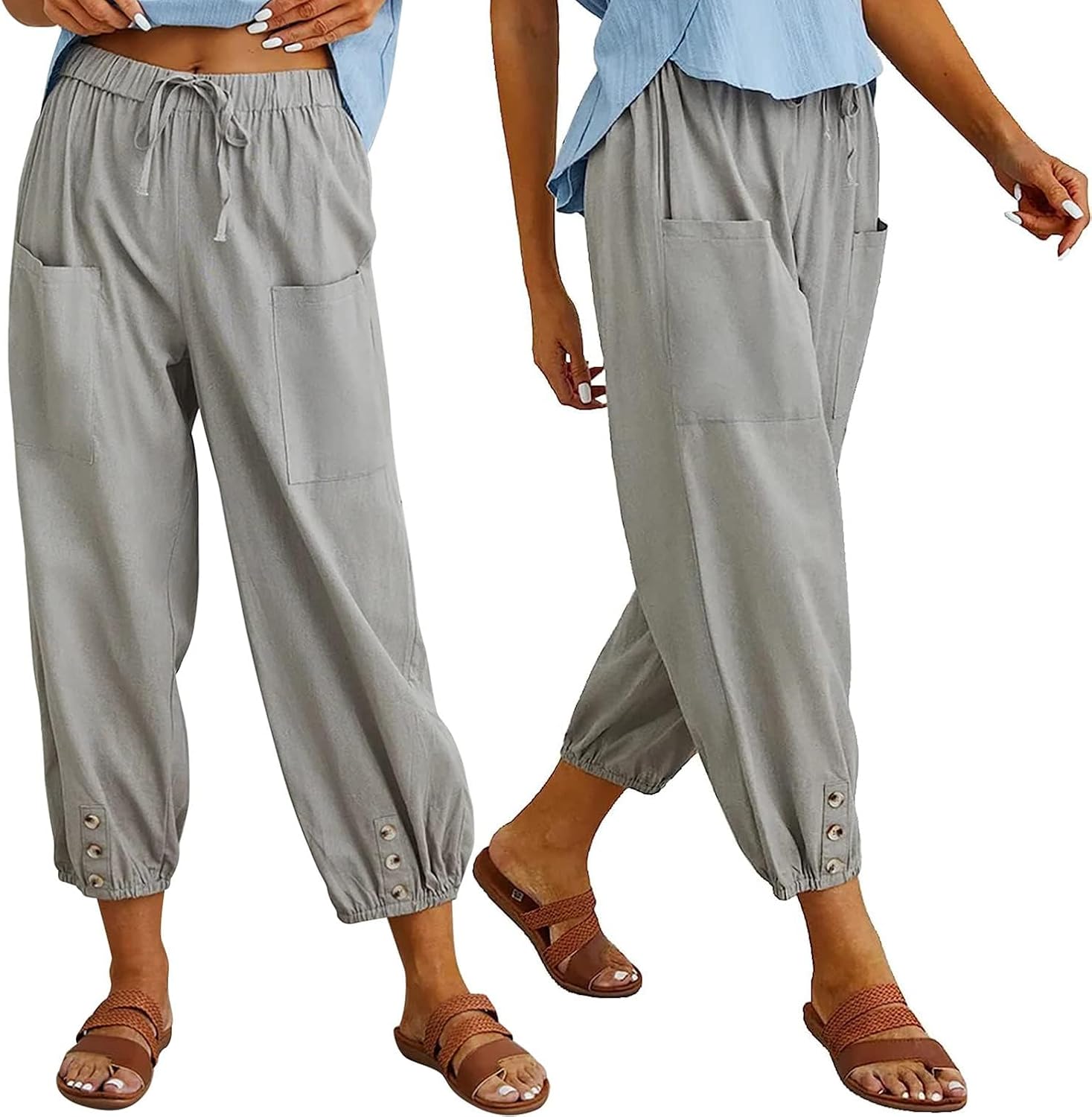MARSVOVO Women's High Waist Style Loose Pants Drawstring Capri Pants with Pockets Wide Leg Ankle Cropped Pants for Women