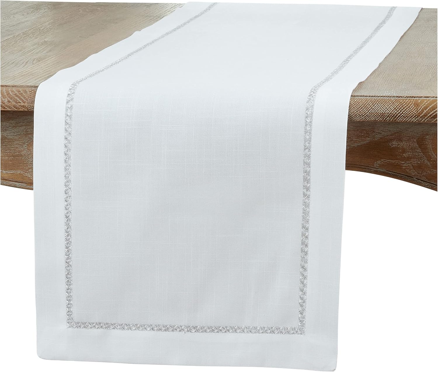 Occasion Gallery Polyester White w Metalic Gold Embroidered BorderDinner Kitchen Table Runner, 16" X 120"