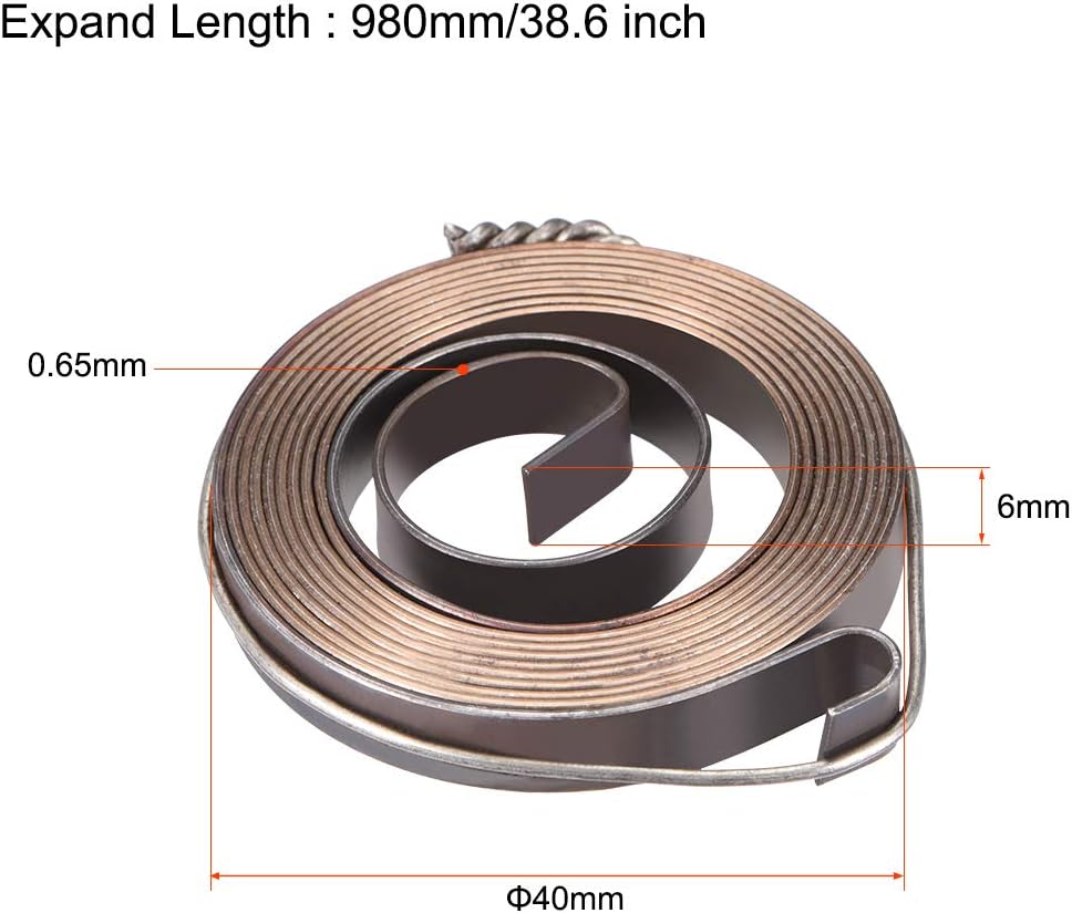 Description:1.The drill press quill return spring is good replacement for many existing quill spring drill presses, this spring will returns the quill to the top after you have completed drilling.Used to all kinds of vacuum cleaner coil spring, volume tube coil spring, and so on.2.Chemical Blackening, the performance of the product form oxide film, isolate the air, prevent rust.3.Pay attention when installing springs. Do not loosen the wire of fixed springs! When installing, install the spring with a fixed wire directly into the spring seat, and the wire will slide out. Specification:Material : Spring SteelFinish : Chemical BlackeningMaterial Thickness : 0.65mmMaterial Width : 6mmSpring OD : 40mmExpand Length (about) : 980mm/38.6inchInner Mounting Type : HookOuter Mounting Type : Hook Package Content :1 x Drill Press Spring